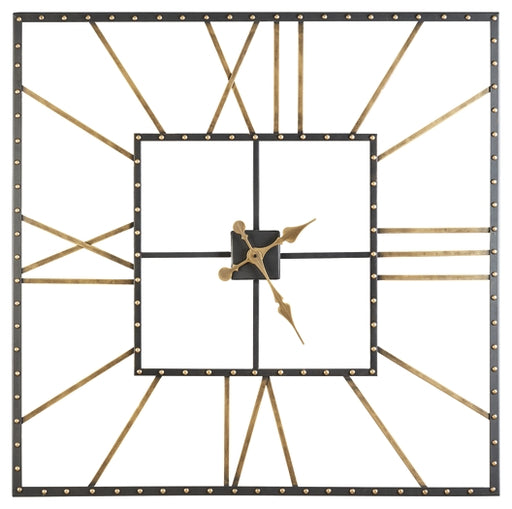 This striking wall clock is a beautiful blend of classic style and industrial charm. A black finish and goldtone Roman numerals add a touch of soph...