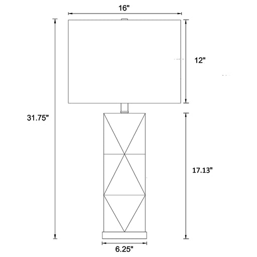 CoasterThis statement-making table lamp features a rectangular base adorned with mirrored paneling and a bold chevron design inlaid with crushed crystal a...