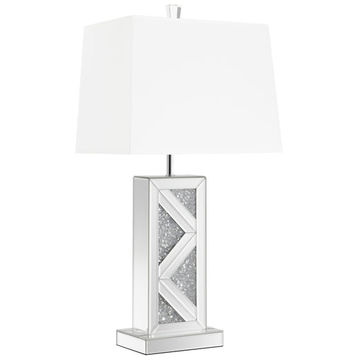 CoasterThis modern table lamp features a rectangular base framed with beveled mirrored panels and sparkling crushed acrylic crystal inlay. Its geometric d...