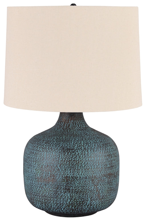 Signature Design by Ashley®Grace your space with the earthy elegance of this metal table lamp. A top-and-bottom ombre effect on the galvanized metal base is delightfully diff...