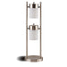 Contemporary verve with a gorgeous mix of materials and finishes. Enjoy a classic, sophisticated ambiance in this table lamp. Designed to impress, its two-tier arrangement of swivel lamps plays on a linear model and deliver twice the lighting. A brushed silver base and frame blend beautifully with frosted cylinder and plastic shades. Operates with a handy on off switch.