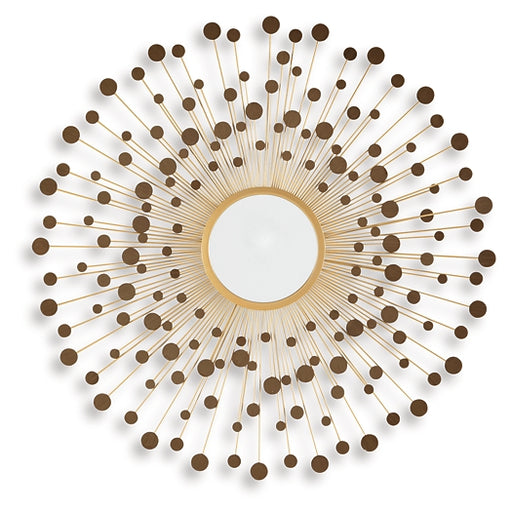 Signature Design by Ashley®Light and bright, this accent mirror is a trendy take on wall decor. Its metallic spokes splay outward to create a sculpture-like frame. With goldt...