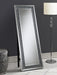 • Standing mirror with a tall vertical profile and dramatic floor-length scale