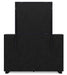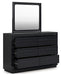 Details B768B5: Includes headboard, footboard and rails, Made with pine solids, veneers and engineered wood substrate, Textured black wood stain with waxy topcoat, Extra wide rails for a bench-like wrap around, Foundation/box spring required, sold separately, Mattress available, sold separately, Assembly required, B768B1: Includes dresser and mirror, Made with pine solids, veneers and engineered wood substrate, Textured black wood stain with waxy topcoat, Hardware-less design, 6 drawers with fully finished interiors, dovetail construction and ball-bearing side glides (top drawers felt lined), Mirror attaches to back of dresser,