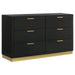 • Modern two-tone finish with metallic finish accents on hardware and recessed bases