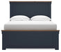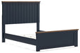 Details B414B3: Includes panel headboard, footboard, rails and slats, Made with hardwood solids, mindi wood veneer and MDF substrates, Two-tone finish features a dark slate blue with a light brown wood-tone top, Foundation/box spring required, sold separately, Mattress available, sold separately, Assembly required, B414B1: Includes dresser and mirror, Made with hardwood solids, mindi wood veneer and MDF substrates, Two-tone finish features a dark slate blue with light brown wood-tone top, Nickel-tone metal knobs, 6 drawers with fully finished interior, dovetail construction and heavy duty ball-bearing side glides, Mirror attaches to back of dresser, B414-92: Made with hardwood solids, mindi wood veneer and MDF substrates, Two-tone finish features a dark slate blue with a light brown wood-tone top, Nickel-tone metal knobs, 2 drawers with fully finished interior, dovetail construction and heavy duty ball-bearing side glides,
