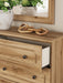 Details PCB1075B4: Includes panel headboard and footboard with rails, Made with engineered wood (MDF/particleboard/plywood) and decorative laminate for the right balance of affordability and durability , Warm replicated oak grain finish , Decorative laminate replicates natural or man-made material surfaces with consistent color, pattern and texture, Foundation/box spring required, sold separately , Mattress available, sold separately, Minor assembly required, PCB1075B1: Includes dresser and mirror, Made with engineered wood (MDF/particleboard/plywood) and decorative laminate for the right balance of affordability and durability, Warm replicated oak grain finish, Decorative laminate replicates natural or man-made material surfaces with consistent color, pattern and texture, Dark nickel-tone knobs, 6 smooth-gliding drawers, Drawer interiors are lined with a faux linen laminate for a clean, finished look, Mirror attaches to back of dresser; can also be mounted on wall horizontally or vertically, Safety is a top priority, clothing storage units are designed to meet the most current standards for stability, ATM F 2057 (ASTM International) , Drawers extend out to accommodate maximum access to drawer interior while maintaining safety, Minor assembly required, PCB1075-91: Made with engineered wood (MDF/particleboard/plywood) and decorative laminate for the right balance of affordability and durability, Warm replicated oak grain finish, Decorative laminate replicates natural or man-made material surfaces with consistent color, pattern and texture, Dark nickel-tone knob, 1 smooth-gliding drawer, Drawer interior is lined with a faux linen laminate for a clean, finished look, Open shelf, USB-A and USB-C charging ports, Power cord included; UL listed, Minor assembly required,