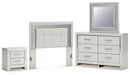 Zyniden Full Upholstered Panel Headboard with Mirrored Dresser and Nightstand