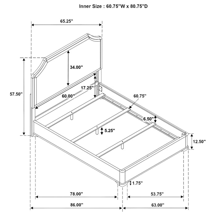 • Cream upholstered headboard adds softness and visual contrast to the classic frame