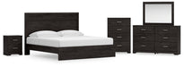 Belachime King Panel Bed with Mirrored Dresser, Chest and Nightstand