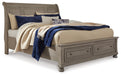 Lettner King Sleigh Bed with 2 Storage Drawers with Mirrored Dresser and Chest