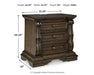 Details B947B4: Includes upholstered panel headboard, upholstered panel footboard and panel rails, Made with hardwood solids, oak and ash swirl veneers, MDF substrates and cast resin components, Dark brown finish, Polyester upholstery with button tufting, Foundation/box spring required, sold separately, Mattress available, sold separately, Assembly required, B947B1: Includes dresser and mirror, Made with hardwood solids, oak and ash swirl veneers, MDF substrates and cast resin components, Dark brown finish, 6 smooth-gliding drawers with dovetail construction (top drawer felt lined), Drawer pulls with antiqued goldtone finish, Mirror attaches to back of dresser, B947-46: Made with hardwood solids, oak and ash swirl veneers, MDF substrates and cast resin components, Dark brown finish, 5 smooth-gliding drawers with dovetail construction (top drawer felt lined), Drawer pulls with antiqued goldtone finish, B947-93: Made with hardwood solids, oak and ash swirl veneers, MDF substrates and cast resin components, Dark brown finish, 2 smooth-gliding drawers with dovetail construction (top drawer felt lined), Pull-out tray behind bottom drawer, Drawer pulls with antiqued goldtone finish, 110V power supply with dual USB charging ports, Power cord included; UL Listed,