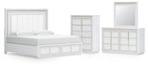 Chalanna King Upholstered Storage Bed with Mirrored Dresser and Chest