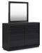 | Details | B768B2: Includes headboard, footboard and rails, Made with pine solids, veneers and engineered wood substrate, Textured black wood stain with waxy topcoat, Extra wide rails for a bench-like wrap around, Foundation/box spring required, sold separately, Mattress available, sold separately, Assembly required, B768B1: Includes dresser and mirror, Made with pine solids, veneers and engineered wood substrate, Textured black wood stain with waxy topcoat, Hardware-less design, 6 drawers with fully finished interiors, dovetail construction and ball-bearing side glides (top drawers felt lined), Mirror attaches to back of dresser, B768-46: Made with pine solids, veneers and engineered wood substrate, Textured black wood stain with waxy topcoat, Hardware-less design, 5 drawers with fully finished interiors, dovetail construction and ball-bearing side glides (top drawers with felt-lined bottoms), | |