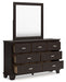 | Details | B441B6: Includes panel headboard, footboard, rails and slats, Made with hardwood solids, engineered wood veneer and MDF substrates, Dark brown finish, Floating panel headboard, Picture frame footboard, Foundation/box spring required, sold separately , Mattress available, sold separately, Assembly required, B441B1: Includes dresser and mirror, Made with hardwood solids, engineered wood veneer and MDF substrates, Dark brown finish, Metal bar pulls with bright nickel-tone finish, 7 smooth-gliding drawers with dovetail construction and metal center guides, Drawer interiors are lined with a wood grain laminate for a clean, finished look, Top moulding on dresser, Mirror attaches to back of dresser, B441-46: Made with hardwood solids, engineered wood veneer and MDF substrates, Dark brown finish, Metal bar pulls with bright nickel-tone finish, 5 smooth-gliding drawers with dovetail construction and metal center guides, Drawer interiors are lined with a wood grain laminate for a clean, finished look, Top moulding, | |