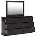 Details B138B53: Includes panel headboard/footboard and rails, Made with engineered wood (MDF/particleboard/plywood) and decorative laminate for the right balance of affordability and durability, Solid black finish, Decorative laminate replicates natural or man-made material surfaces with consistent color, pattern and texture, Foundation/box spring required, sold separately, Mattress available, sold separately, Assembly required, B138B50: Includes dresser and mirror, Made with engineered wood (MDF/particleboard/plywood) and decorative laminate for the right balance of affordability and durability , Solid black finish, Decorative laminate replicates natural or man-made material surfaces with consistent color, pattern and texture, Pewter-tone knobs, 6 smooth-gliding drawers, Mirror attaches to back of dresser; can also be mounted on wall horizontally or vertically, Minor assembly required, B138-46: Made of wood and engineered wood (MDF/particleboard), Antiqued black finish, Rubbed dark metal hardware, 5 smooth-gliding drawers, Includes tipover restraint device, Small Space Solution, Safety is a top priority, clothing storage units are designed to meet the most current standard for stability, ASTM F 2057 (ASTM International), Drawers extend out to accommodate maximum access to drawer interior while maintaining safety,
