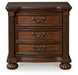| Details | B764B5: Includes poster headboard/footboard panels, rails and headboard posts, Made with hardwood solids, cherry veneer with MDF substrates, decorative cast resin and furniture grade plastic components , Cherry brown finish, Headboard with metallic accent filigree, Foundation/box spring required, sold separately, Mattress available, sold separately, Assembly required, B764B1: Includes dresser and mirror, Made with hardwood solids, cherry veneer with MDF substrates, decorative cast resin and furniture grade plastic components , Cherry brown finish, Decorative metal drawer pulls with dark bronze-tone finish, 7 drawers with fully finished interior, dovetail construction and ball-bearing side glides, Mirror attaches to back of dresser, B764-46: Made with hardwood solids, cherry veneer with MDF substrates, decorative cast resin and furniture grade plastic components, Cherry brown finish, Decorative metal drawer pulls with dark bronze-tone finish, 5 drawers with fully finished interior, dovetail construction and ball-bearing side glides, B764-93: Made with hardwood solids, cherry veneer with MDF substrates, decorative cast resin and furniture grade plastic components, Cherry brown finish, Decorative metal drawer pulls with dark bronze-tone finish, 2 drawers with fully finished interior, dovetail construction and ball-bearing side glides, Pull-out tray behind bottom drawer, | |