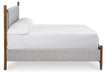 | Details | B615B2: Includes upholstered panel headboard and footboard , Solid wood frame, Due to the use of natural wood materials, some variations may occur , Frame with medium brown wood tone finish, Polyester upholstery, Tapered legs, Foundation/box spring required, sold separately , Mattress available, sold separately, Assembly required, B615B1: Includes dresser and mirror, Made with hardwood solids, mango wood veneer and MDF substrates, Medium brown wood-tone finish, 6 drawers with fully finished interior, dovetail construction and heavy duty ball-bearing side glides, Round tapered legs, Mirror attaches to back of dresser, | |