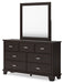 Details B441B2: Includes panel headboard, footboard, rails and slats, Made with hardwood solids, engineered wood veneer and MDF substrates, Dark brown finish, Floating panel headboard, Picture frame footboard, Foundation/box spring required, sold separately , Mattress available, sold separately, Assembly required, B441B1: Includes dresser and mirror, Made with hardwood solids, engineered wood veneer and MDF substrates, Dark brown finish, Metal bar pulls with bright nickel-tone finish, 7 smooth-gliding drawers with dovetail construction and metal center guides, Drawer interiors are lined with a wood grain laminate for a clean, finished look, Top moulding on dresser, Mirror attaches to back of dresser, B441-46: Made with hardwood solids, engineered wood veneer and MDF substrates, Dark brown finish, Metal bar pulls with bright nickel-tone finish, 5 smooth-gliding drawers with dovetail construction and metal center guides, Drawer interiors are lined with a wood grain laminate for a clean, finished look, Top moulding, B441-92: Made with hardwood solids, engineered wood veneer and MDF substrates, Dark brown finish, Metal bar pulls with bright nickel-tone finish, 2 smooth-gliding drawers with dovetail construction and metal center guides, Drawer interiors are lined with a wood grain laminate for a clean, finished look, Top moulding,