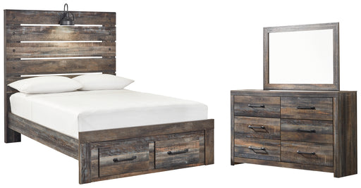 Signature Design by Ashley®Consumer's ChoiceThis queen-size panel bed with storage, dresser and mirror is a refined take on barn board beauty. Its complex, replicated wood grain showcases hin...