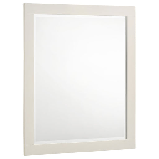 CoasterThis contemporary mirror adds a refined touch to any bedroom with its clean, minimalist frame and rustic cream finish. Crafted with a rough-sawn, w...