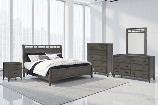 Clean lines lend sophistication and structure to this queen panel bed. Its complex rich grayish brown finish, slats set in a contemporary herringbo...
