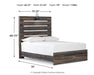 When merged in just the right way, rustic and industrial styles can make one happy marriage. Case in point: this queen panel bed. A refined take on barn board beauty, its complex, replicated wood grain showcases hints of burnt orange and teal tones for a sense of weatherworn authenticity. Love to read in bed? You’re sure to find the pair of retro-chic light sconces and USB plug-ins on the open-slat style headboard such a bright idea. Mattress and foundation/box spring available, sold separately.