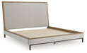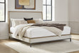 Details Includes upholstered headboard, footboard, rails and roll slats, Made with engineered wood frames, solid wood blocking and foam, Footboard with metal legs in a gunmetal gray finish, Polyester upholstery, Bed does not require additional foundation/box spring; accommodates most zero clearance adjustable bases, Mattress available, sold separately , Assembly required