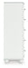 Details Made with engineered wood (MDF/particleboard/plywood) and decorative laminate for the right balance of affordability and durability, Matte white finish, Decorative laminate replicates natural or man-made material surfaces with consistent color, pattern and texture, Crystal drawer knobs, 5 smooth-gliding drawers, Drawer interiors are lined with a faux linen laminate for a clean, finished look, Safety is a top priority, clothing storage units are designed to meet the most current standards for stability, ATM F 2057 (ASTM International), Drawers extend out to accommodate maximum access to drawer interior while maintaining safety, Minor assembly required