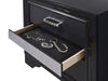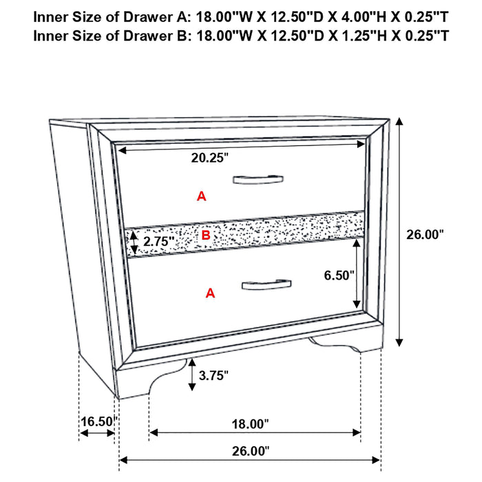 Infused with timeless glamour, this three-drawer nightstand brings refined character to any bedroom. Its linear profile is accented by elegant framing and a glittering center panel that conceals a hidden felt-lined drawer, ideal for delicate accessories. Smooth metal-extension glides ensure effortless drawer operation, while crystal-inspired pulls catch the light with radiant sparkle. Built from engineered wood and finished in a textured laminate veneer, it delivers durability with sophisticated transitional charm.