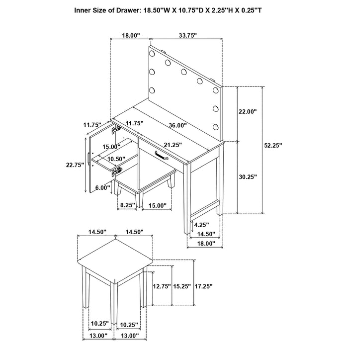 Elijah Vanity Set with Lighting & Stool White and Dark Grey