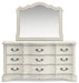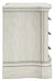 | Details | B980B5: Includes headboard, footboard and rails, Made with hardwood solids, spruce veneer, MDF substrates and cast resin components , Antiqued white painted finish, Polyester upholstery, Button tufting, Foundation/box spring required, sold separately, Mattress available, sold separately, Assembly required, B980B1: Includes dresser and mirror, Made with hardwood solids, spruce veneer, MDF substrates and cast resin components, Antiqued white painted finish, 9 drawers with fully finished interiors, French and English dovetail construction and ball-bearing side glides, Metal bar pulls with aged pewter-tone finish, Mirror attaches to back of dresser, B980-46: Made with hardwood solids, spruce veneer, MDF substrates and cast resin components, Antiqued white painted finish, 5 drawers with fully finished interiors, French and English dovetail construction and ball-bearing side glides, Metal bar pulls with aged pewter-tone finish, B980-93: Made with hardwood solids, spruce veneer, MDF substrates and cast resin components, Antiqued white painted finish, 3 drawers with fully finished interiors, French and English dovetail construction and ball-bearing side glides, Metal bar pulls with aged pewter-tone finish, 110V power supply with dual USB charging ports, Power cord included; UL Listed, | |