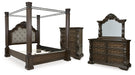 Maylee King Canopy Bed with Mirrored Dresser and Chest
