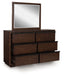 | Details | PCB857B2: Includes canopy, upholstered poster headboard, footboard, rails, posts and slats, Made with hardwood solids, mango wood veneer and MDF substrates , Side rails feature laminated solid hardwood slat support rails (or LVL) with glued and screwed blocking for added strength, Complex, rich dark brown finish, Foam headboard cushion with polyester upholstery , Measure room, including ceiling height, to ensure bed clears fans and light fixtures, Foundation/box spring required, sold separately , Mattress available, sold separately , USB-A and USB-C charging ports, Power cord included; UL Listed, Assembly required, PCB857B1: Made with hardwood solids, mango wood veneer and MDF substrates , Complex, rich dark brown finish, Full-length metal rail pulls with matte black finish, 6 smooth-gliding drawers with fully finished interiors, dovetail construction and heavy-duty ball-bearing side glides (top drawers felt lined), Mirror attaches to back of dresser, Soft rounded pilasters, Raised plinth base, | |