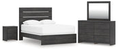 Hollivern Queen Panel Bed with Mirrored Dresser and Nightstand