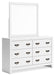 | Details | B427B2: Includes twin panel headboard, footboard, rails and slats, Made with hardwood solids, okoume veneer and MDF substrates, White finish, Foundation/box spring required, sold separately, Mattress available, sold separately, Assembly required, B427B1: Includes dresser and mirror, Made with hardwood solids, okoume veneer and MDF substrates, White finish, 6 drawers with dovetail construction and metal center guides, Hardware with dark finish, Drawer interiors are lined with a wood grain laminate for a clean, finished look, Mirror attaches to back of dresser, B427-46: Made with hardwood solids, okoume veneer and MDF substrates, White finish, 5 drawers with dovetail construction and metal center guides, Hardware with dark finish, Drawer interiors are lined with a wood grain laminate for a clean, finished look, B427-92: Made with hardwood solids, okoume veneer and MDF substrates, White finish, 2 drawers with dovetail construction and metal center guides, Hardware with dark finish, Drawer interiors are lined with a clean wood grain laminate for a clean, finished look, | |