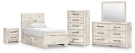 | Details | B2310B23: Includes panel headboard, panel footboard, 2 under bed storage units and roll slats , Made with engineered wood (MDF/particleboard/plywood) and decorative laminate for the right balance of affordability and durability, Rustic white finish over replicated reclaimed oak grain with authentic touch, Decorative laminate replicates natural or man-made material surfaces with consistent color, pattern and texture, 4 smooth-gliding storage drawers, Drawer interiors are lined with a faux linen laminate for a clean, finished look, Handles with dark pewter-tone finish, Bed does not require additional foundation/box spring; accommodates most zero clearance adjustable bases with the addition of a bunkie board , Mattress available, sold separately, Minor assembly required, B2310B1: Made with engineered wood (MDF/particleboard/plywood) and decorative laminate for the right balance of affordability and durability, Rustic white finish over replicated reclaimed oak grain with authentic touch, Decorative laminate replicates natural or man-made material surfaces with consistent color, pattern and texture, Handles with dark pewter-tone finish, 6 smooth-gliding drawers, Drawer interiors are lined with a faux linen laminate for a clean, finished look, Framed front and pilasters, Safety is a top priority, clothing storage units are designed to meet the most current standard for stability, ASTM F 2057 (ASTM International), Drawers extend out to accommodate maximum access to drawer interior while maintaining safety, Mirror attaches to back of dresser; can also be mounted on wall horizontally or vertically , Minor assembly required, B2310-46: Made with engineered wood (MDF/particleboard/plywood) and decorative laminate for the right balance of affordability and durability, Rustic white finish over replicated reclaimed oak grain with authentic touch, Decorative laminate replicates natural or man-made material surfaces with consistent color, pattern and texture, Handles with dark pewter-tone finish, 5 smooth-gliding drawers, Drawer interiors are lined with a faux linen laminate for a clean, finished look, Framed front and pilasters, Safety is a top priority, clothing storage units are designed to meet the most current standard for stability, ASTM F 2057 (ASTM International), Drawers extend out to accommodate maximum access to drawer interior while maintaining safety, Minor assembly required, B2310-92: Made with engineered wood (MDF/particleboard/plywood) and decorative laminate for the right balance of affordability and durability, Rustic white finish over replicated reclaimed oak grain with authentic touch, Decorative laminate replicates natural or man-made material surfaces with consistent color, pattern and texture, Handles with dark pewter-tone finish, 2 smooth-gliding drawers, Drawer interiors are lined with a faux linen laminate for a clean, finished look, Framed front and pilasters, 2 slim-profile USB charging ports, Power cord included; UL Listed, Minor assembly required, | |