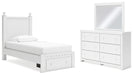 Mollviney Twin Panel Storage Bed with Mirrored Dresser