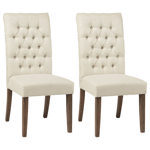 CoasterThis set of two wood and fabric tufted parson chairs has a handsome rustic design. Each chair is crafted with durable rubberwood and plywood. Styli...