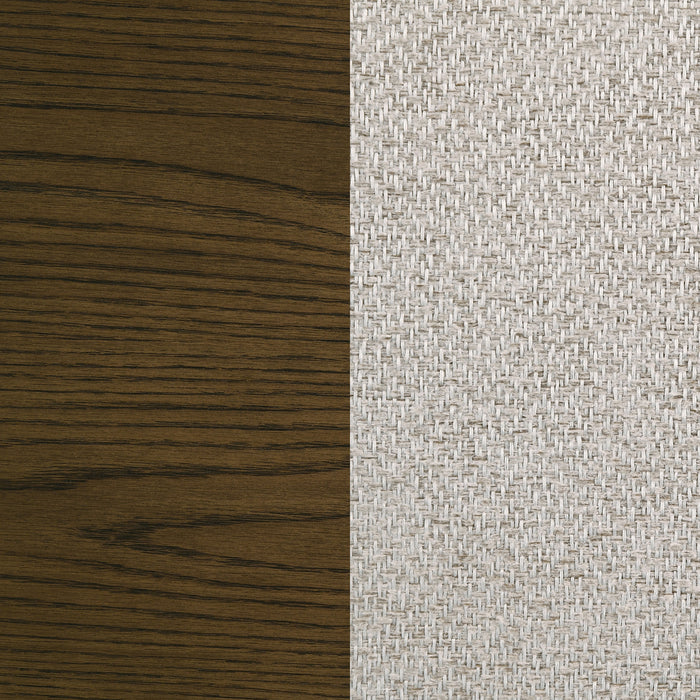 • Upholstered in light tan fabric for a soft, versatile, and modern look