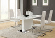 • Transform your dining space with the sleek Anges 5-piece dining set, featuring a glossy white table and chrome base
