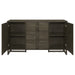 Transform your dining space with our stylish server, designed to enhance both functionality and style. This server features two door cabinets, three drawers, and two shelves, providing ample storage for your dining essentials. The sleek dark grey finish exudes modern elegance, while the brown felt-lined top drawers add a luxurious touch. Elevate your dining experience with this exquisite server, combining practicality and sophistication seamlessly.