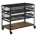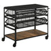 • Industrial-inspired storage cart with a black mesh metal frame