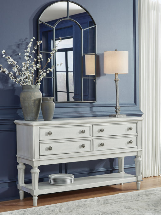 Benchcraft®Transform your home into a haven of timeless elegance with this dining server. It pairs a classic antiqued white finish with reeded legs for tradit...