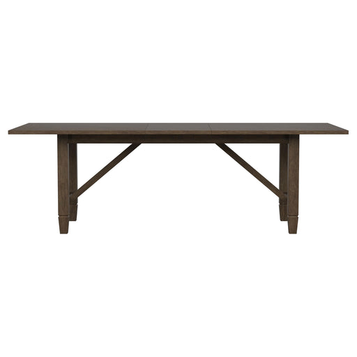 CoasterA decorative base is the highlight of this stylish transitional wood dining table. Featuring a rectangular silhouette measuring just over 104 inche...