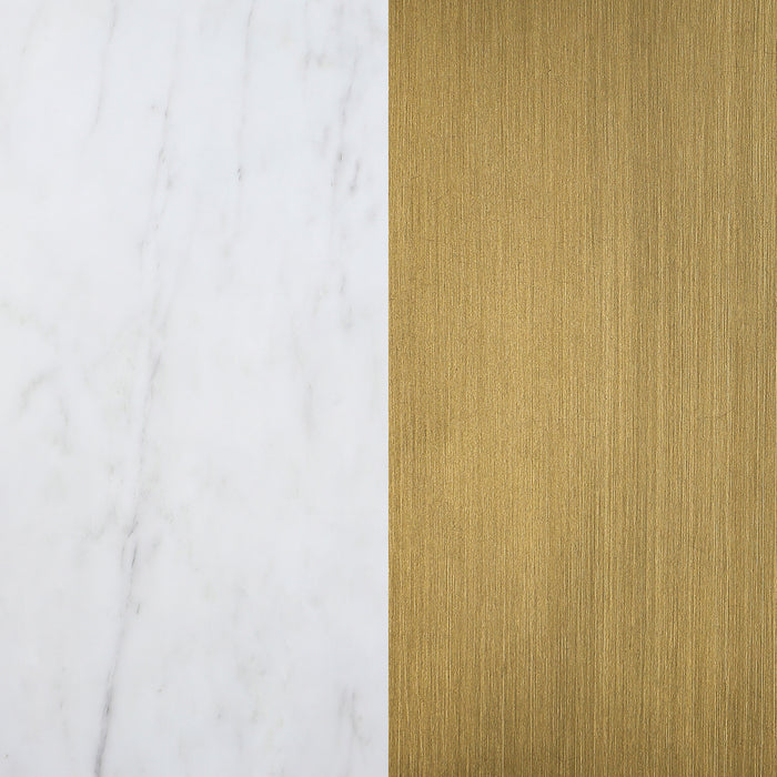 Freshen up your elegant dining room with the luxurious look and feel of genuine marble. This modern dining table pairs a round silhouette with beautiful white marble complete with light grey veining that offers organic elegance and dimensionality. This striking table stands on a conical pedestal base that receives a gleaming gold finish that radiates warmth and sophistication. This table is a stunning addition in a formal dining space, offering refined character to family and friends. The pairing of cool marble and warm brushed gold strikes a perfect balance.