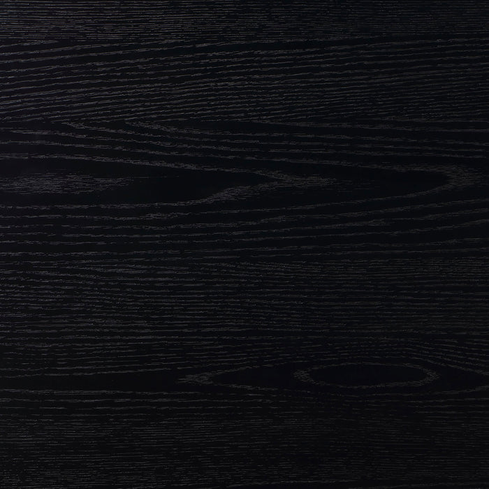 • Black finish wood construction with wire brush distressing is bold, versatile, and textural