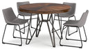 | Details | D372-15: Tabletop made with mindi veneer and engineered wood, Metal base with brushed dark bronze-tone finish, Seats up to 4, Assembly required, D372-08: Tubular metal base, Bucket seat, Gray faux leather upholstery, Assembly required, | |