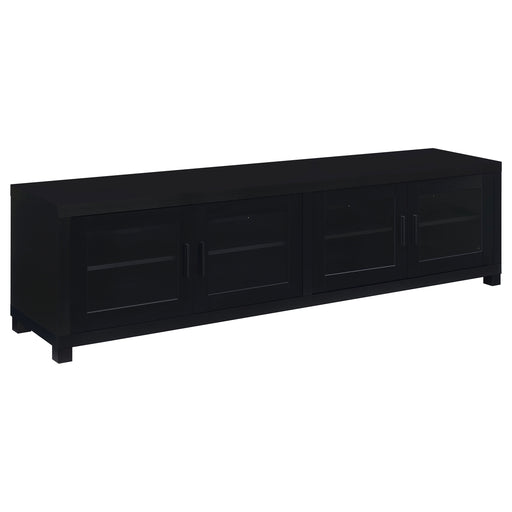 CoasterThis expansive media console merges bold presence with discreet practicality. Framed in a striking black finish, four glass doors reveal warm wood-...