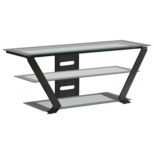 CoasterEntertain in style with the modern charm of this sleek TV console. Crisp, clean metal lines flare out into an eye-catching shape, giving it a conte...